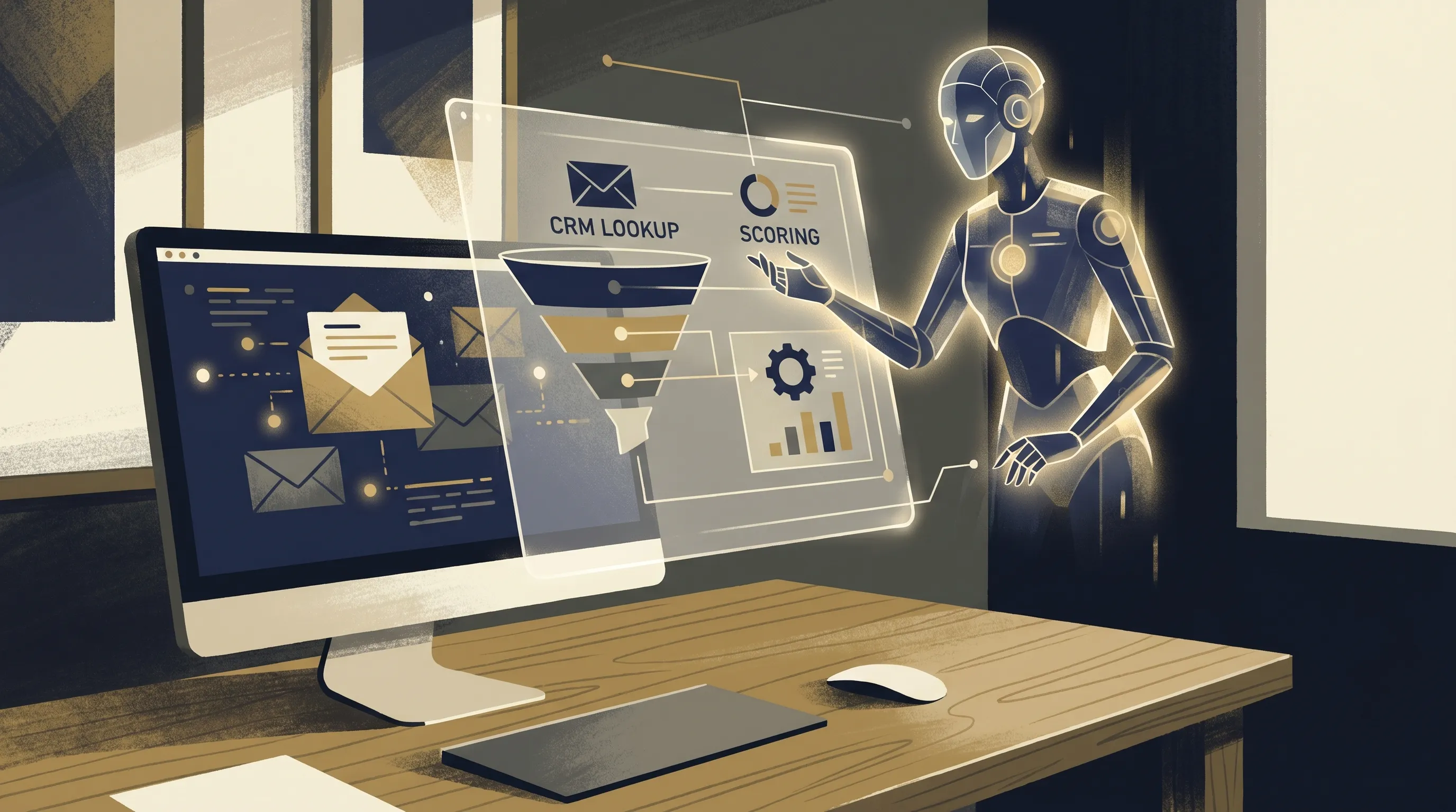 - The six-step structure (trigger, extract, CRM lookup, enrich, score, route) is the right starting architecture. Don’t simplify past the CRM lookup — it’s what separates genuine personalization from generic scoring.